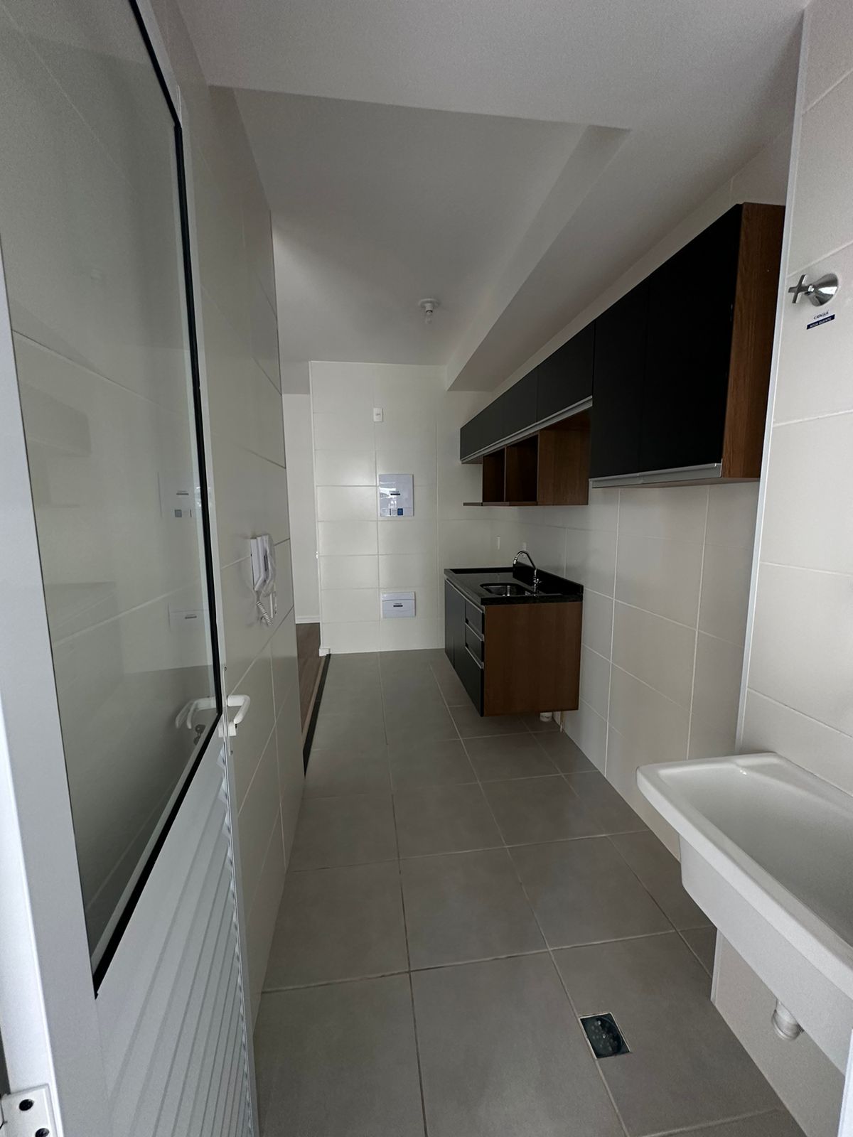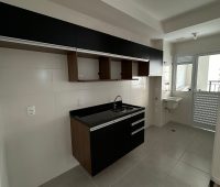 A cozinha com a lavanderia e saída para área gourmet.