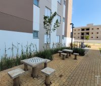 Apartamento no Residencial Madrid com 2 dormitórios, com armários planejados e porta balcão com saída para o garden. Além disso, sala de estar integrada com a sala de jantar e estendida com painel de TV