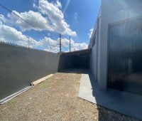 A área externa saindo das salas e indo para o barracão com garagem lateral com 40m²