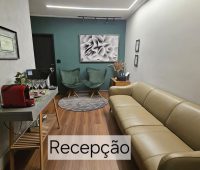 Sala comercial com recepção, 2 banheiros e copa de uso compartilhado.