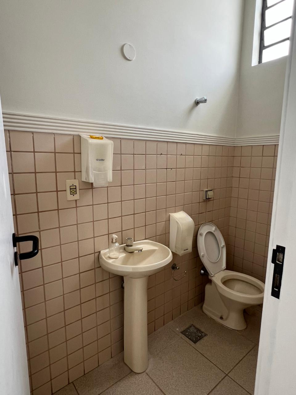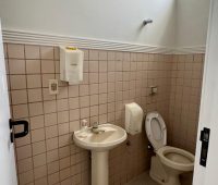 Salão comercial no Centro com ar condicionado, banheiro social, sala com 2 ambientes, 3 lavabos, cozinha, despensa, lavanderia, quintal e garagem.
