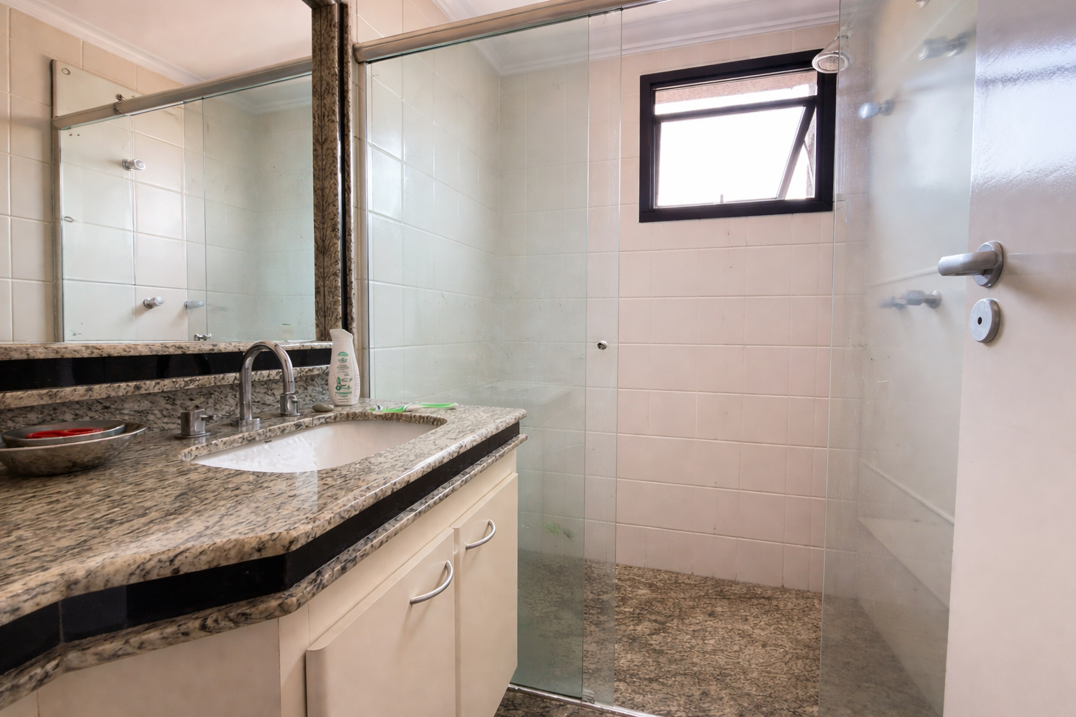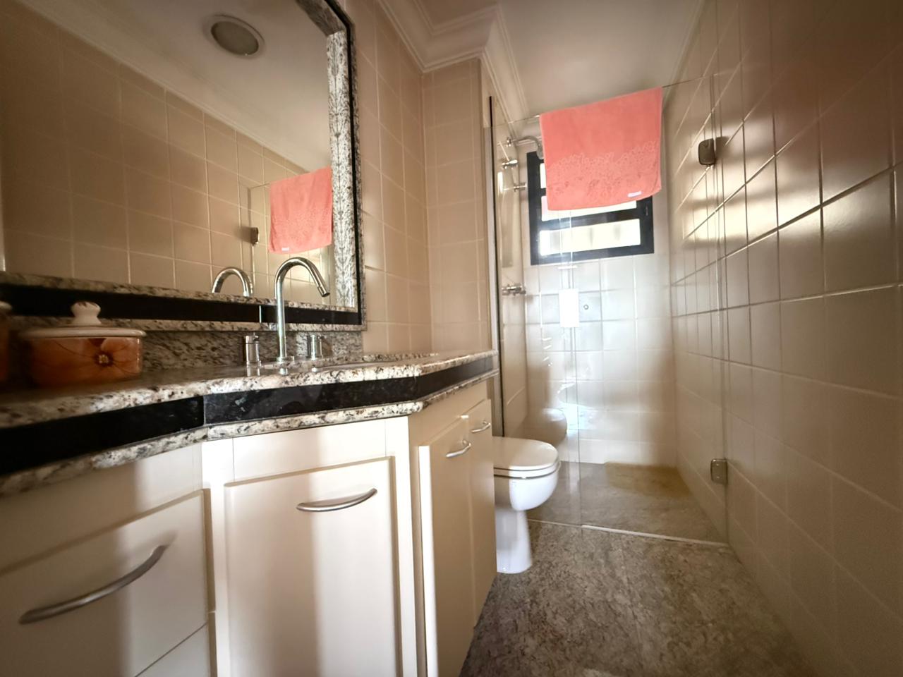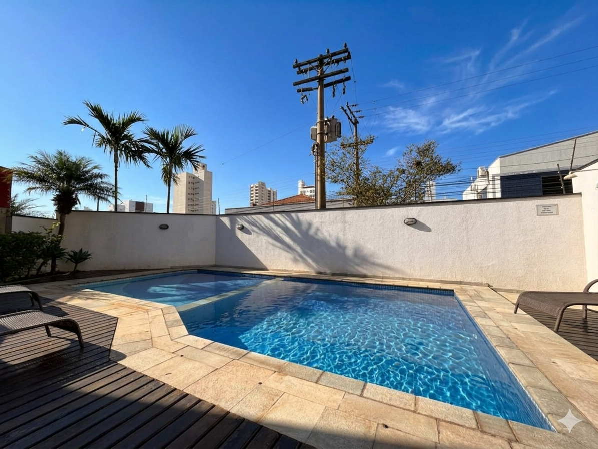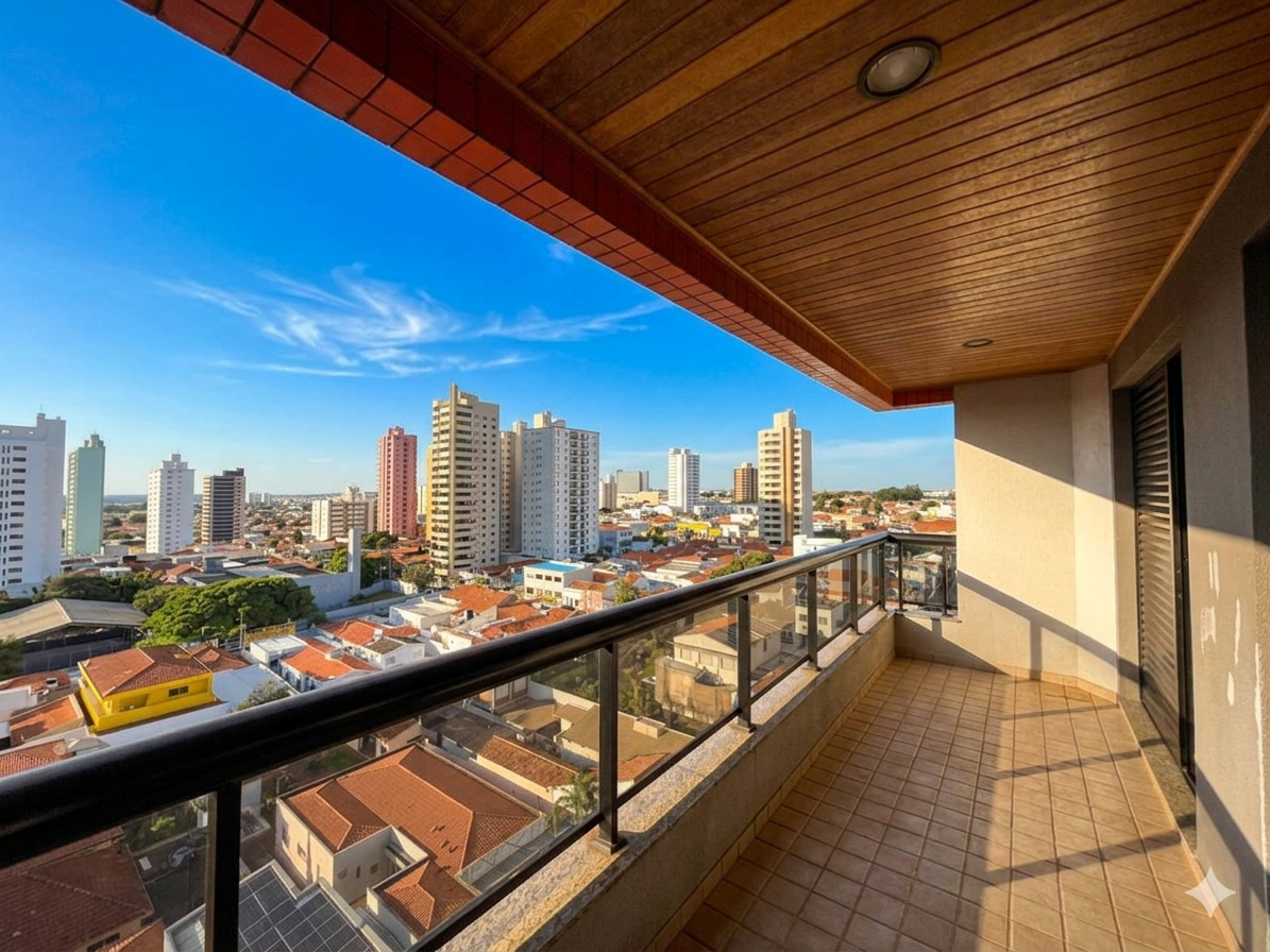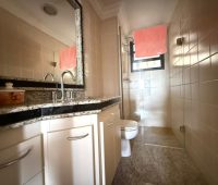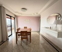 O imóvel conta com ampla sala de estar integrada à sala de jantar, totalmente reformada, além de sacada com vista panorâmica da cidade e um elegante lavabo que complementa o ambiente.