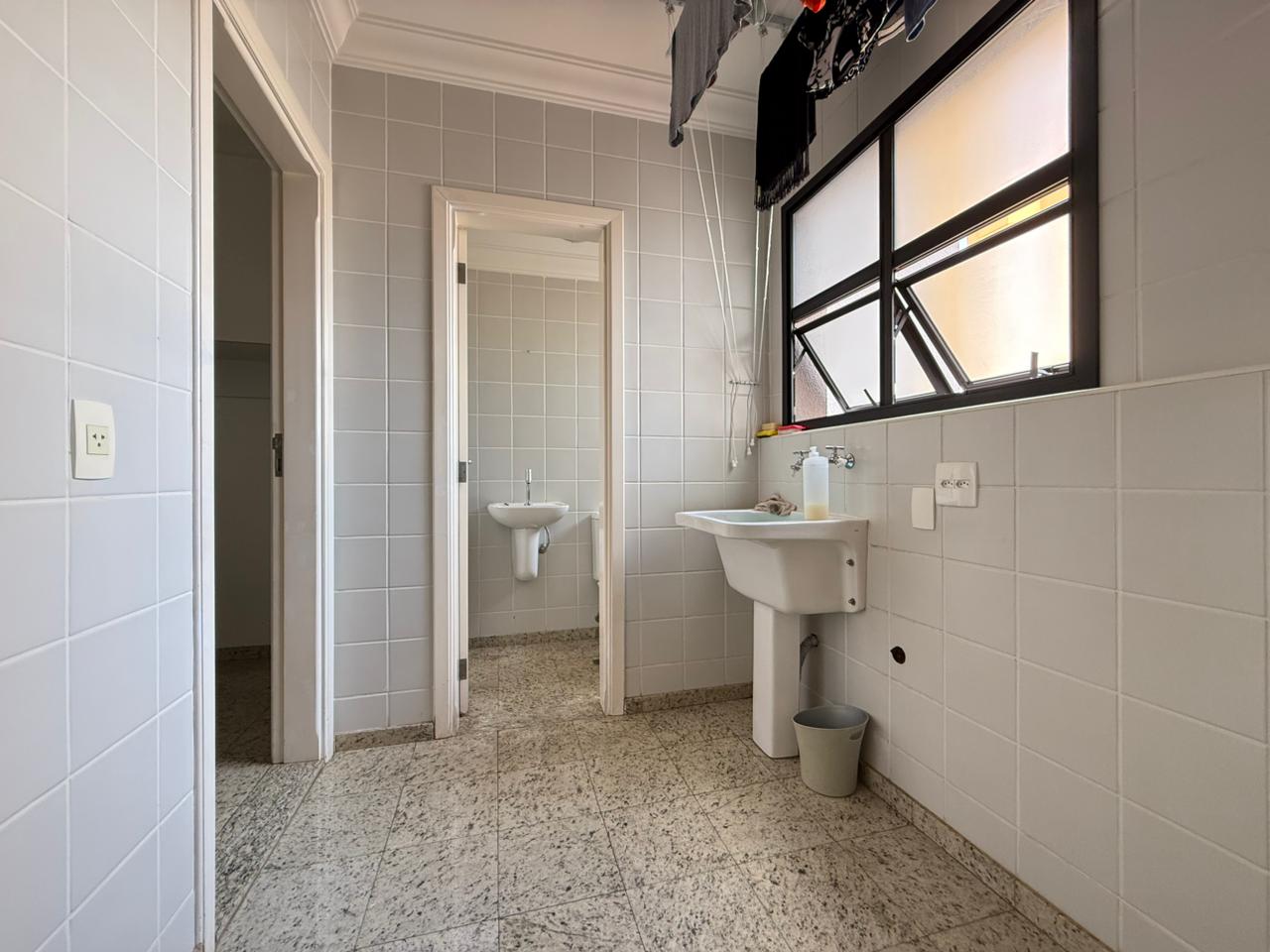 A área de serviço é funcional e dispõe de dependência com quarto e banheiro independentes.