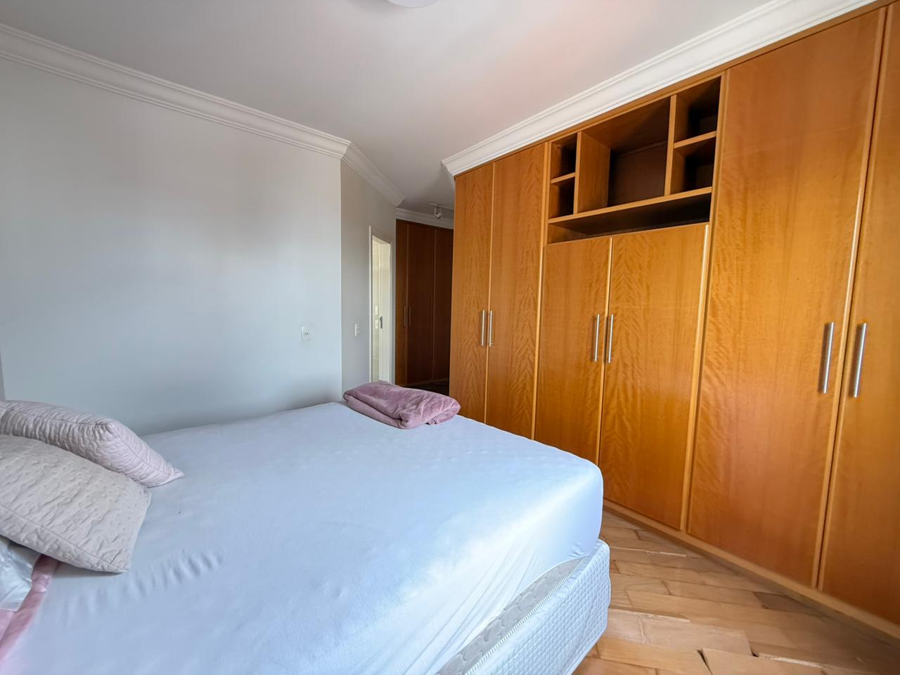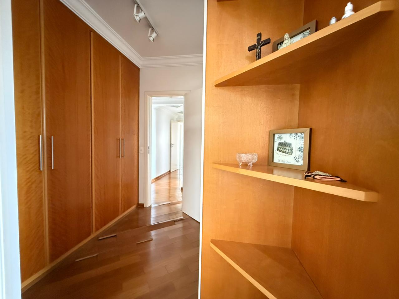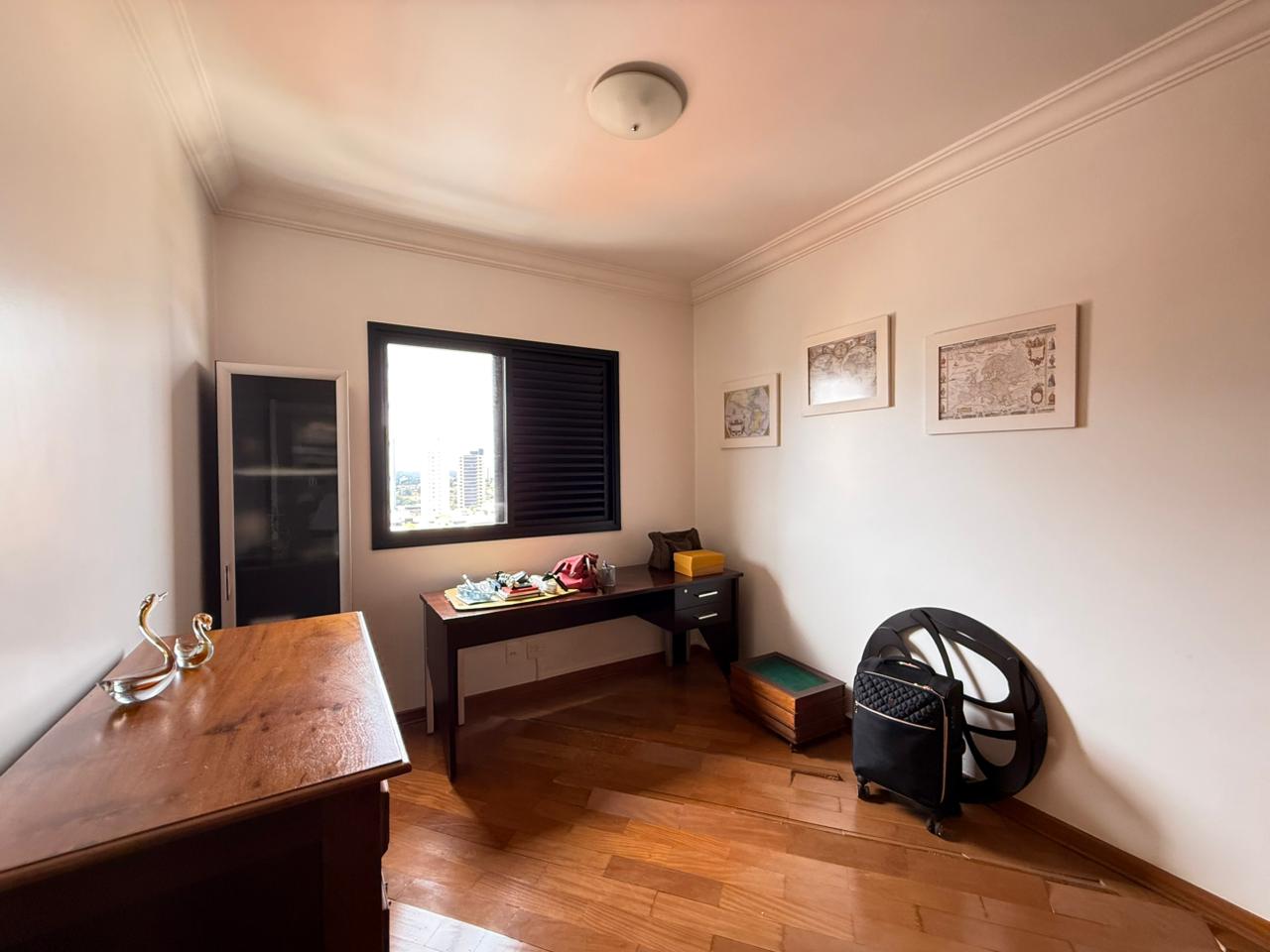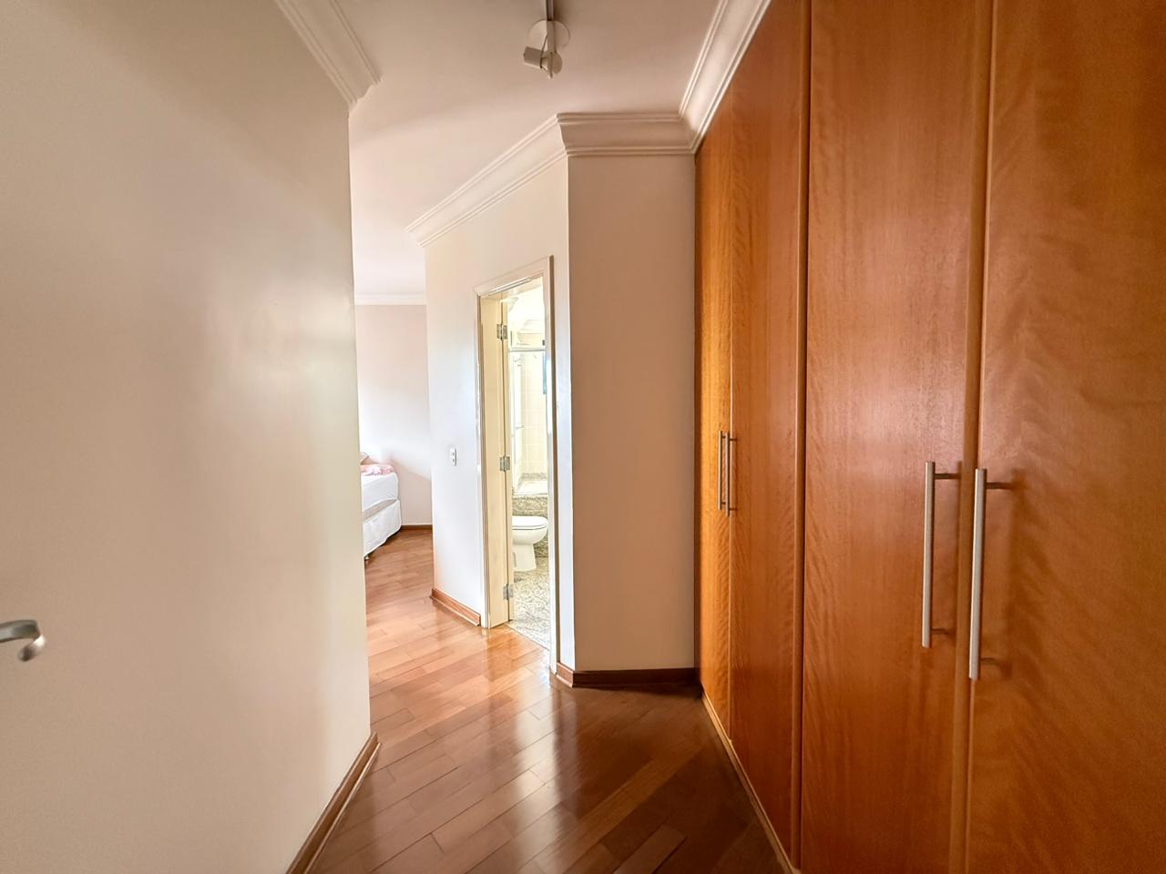 Na área íntima, são 3 dormitórios, sendo 2 suítes — uma delas com hidromassagem — todos com armários planejados em madeira e ainda dispõe de outro dormitório ideal para escritório.