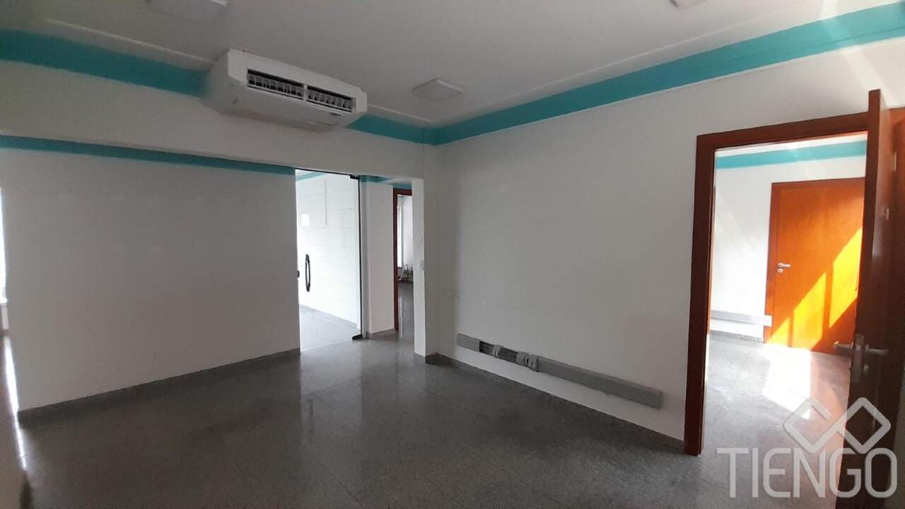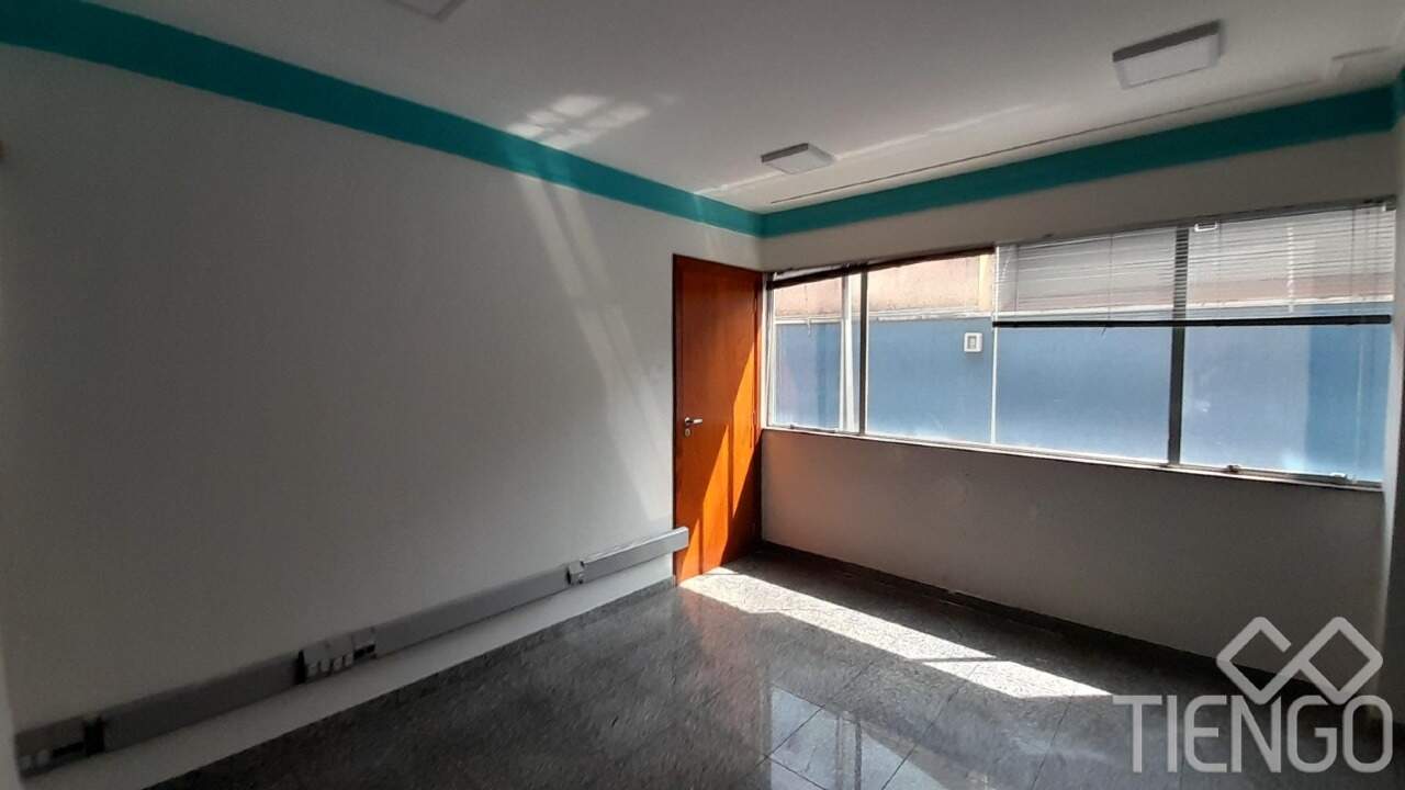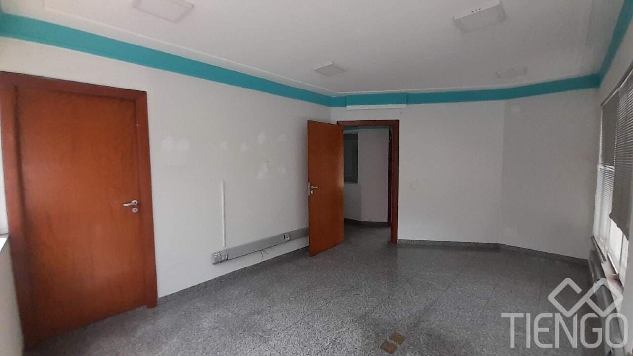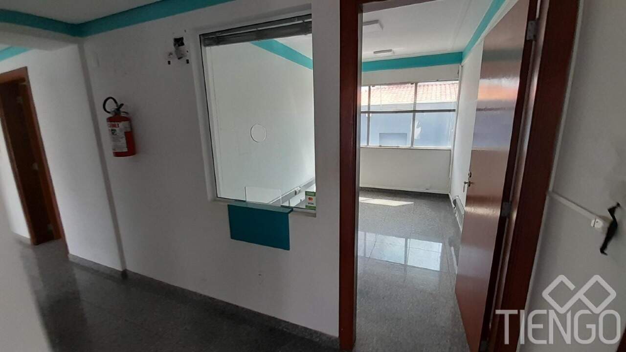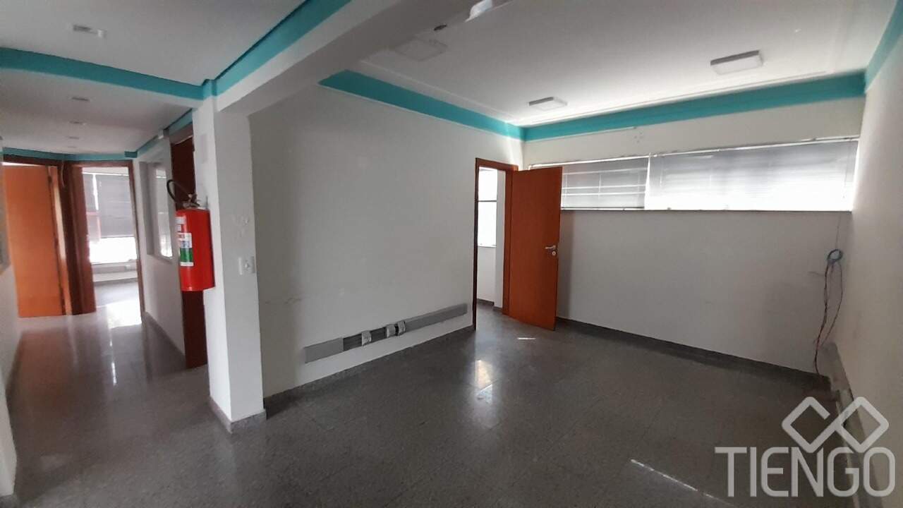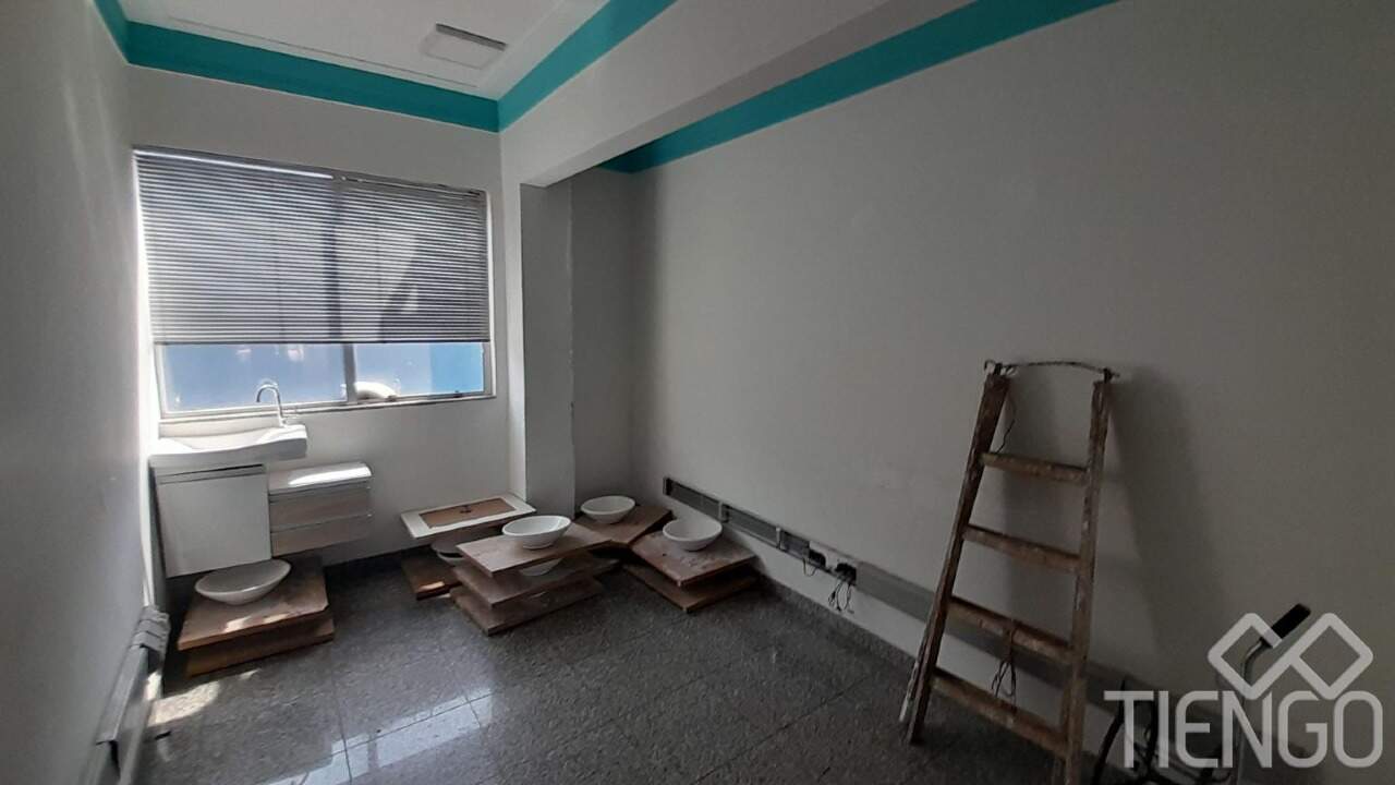 Prédio comercial no Centro com 4 andares contendo 11 salas, 2 banheiros, copa, área de serviço, depósito e estacionamento no térreo.