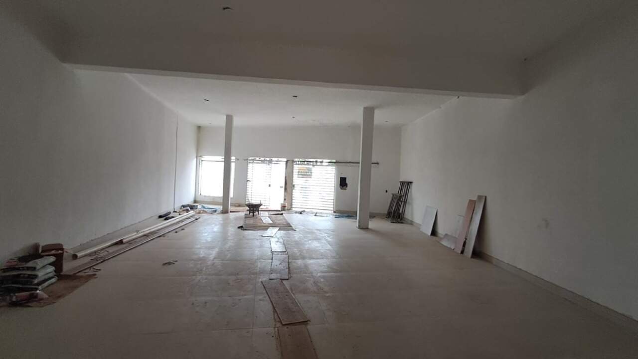Salão comercial todo reformado com 200m², contém 2 banheiros e cozinha.